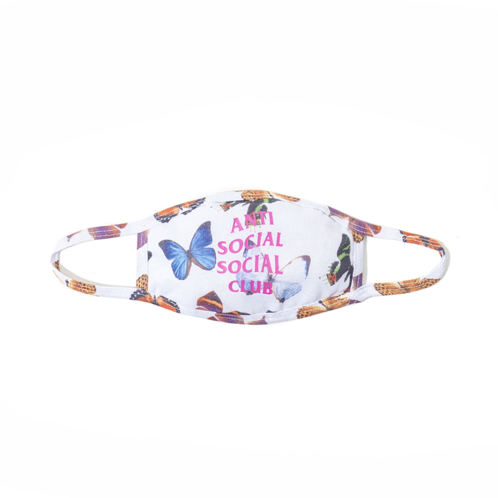 Mask on...The Anti Social Social Club ashton face mask is perfect for the on-the-go partier, playboy or partaker. Features the renown warped logo front + center with a lovely natural backdrop of assorted butterflies. Great for a direct facial flex game!