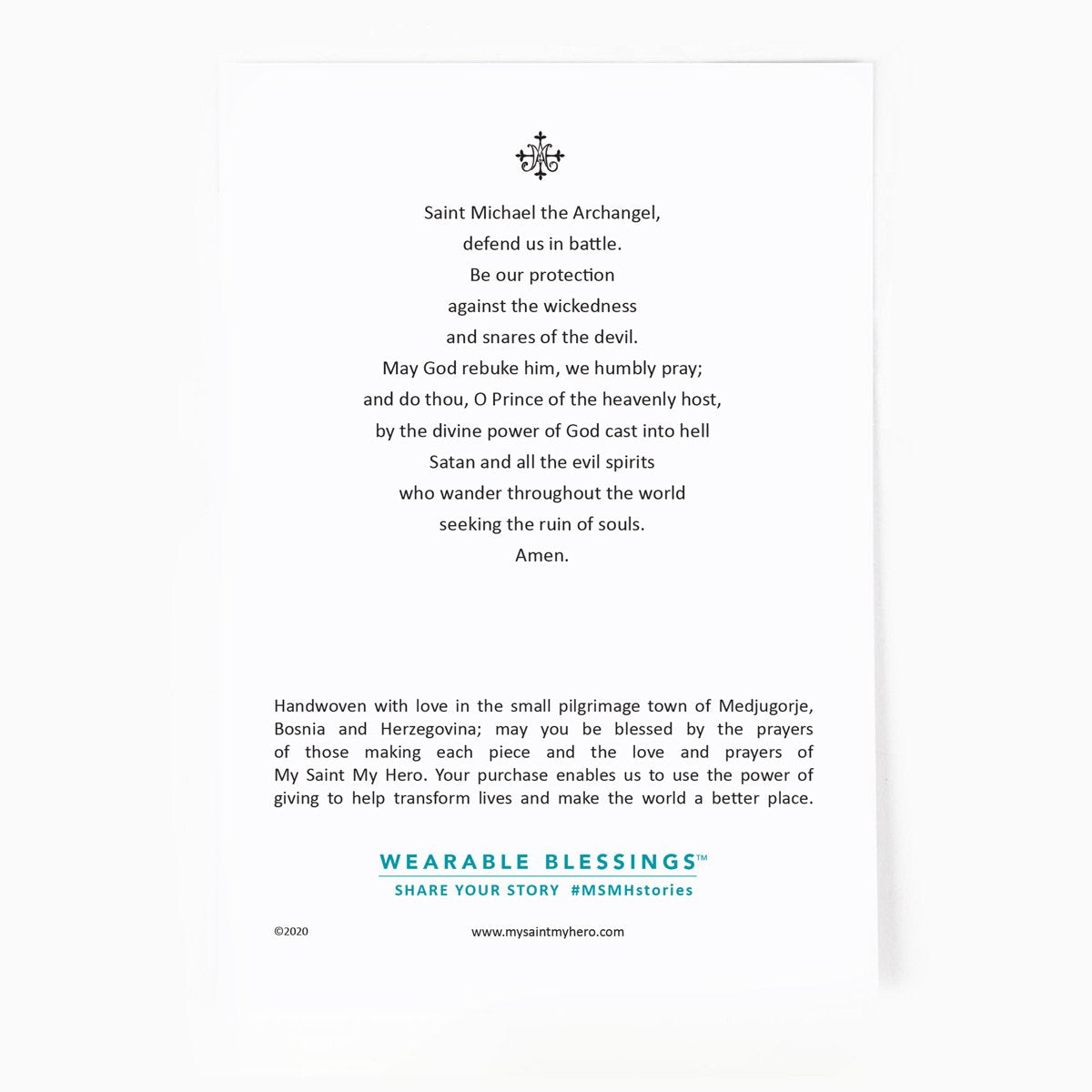 - Archangel Michael Blessing of Protection Bracelet for Kids comes on an inspirational card with a prayer to St. Michael
