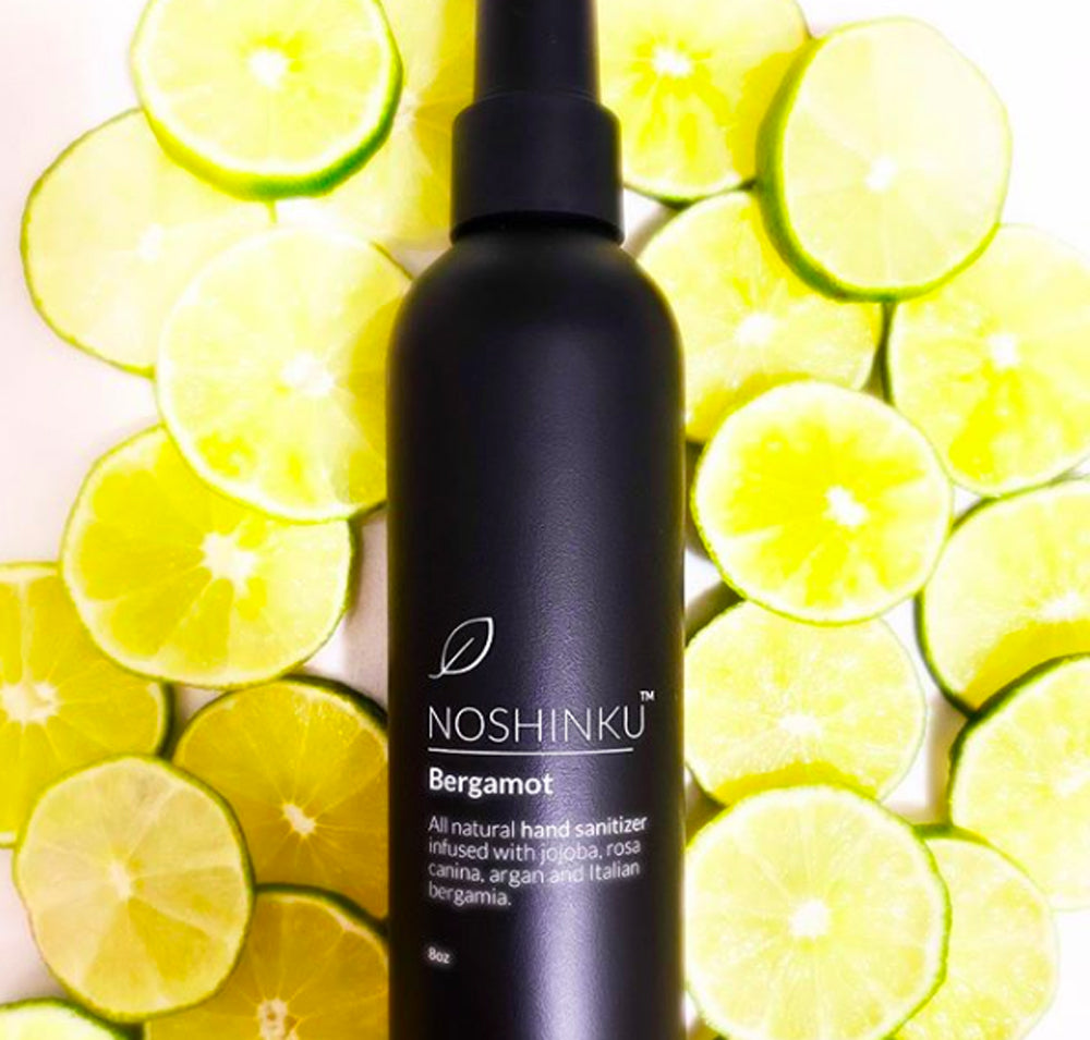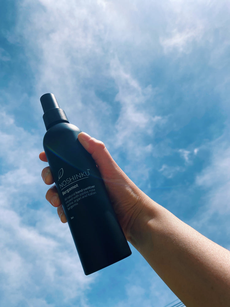 Noshinku is a premium organic hand sanitizer that hydrates skin, smells great + looks as good as it feels. The unique spray formula is 70% pharmacopeia grade USP certified alcohol distilled from organic sugar-cane + infused with hydrating essential oils and botanicals. The blend consists of oils of Bergamot, Jojoba, Argan, Rosehip + Coconut to effectively clean hands while hydrating, refreshing + protecting your skin. Now available in a sleek black brushed aluminum sprayer designed to be refilled.